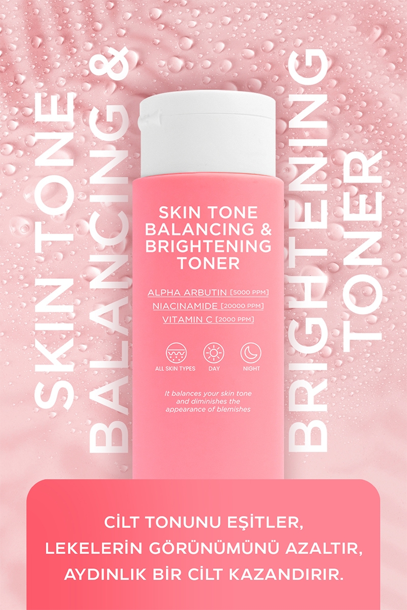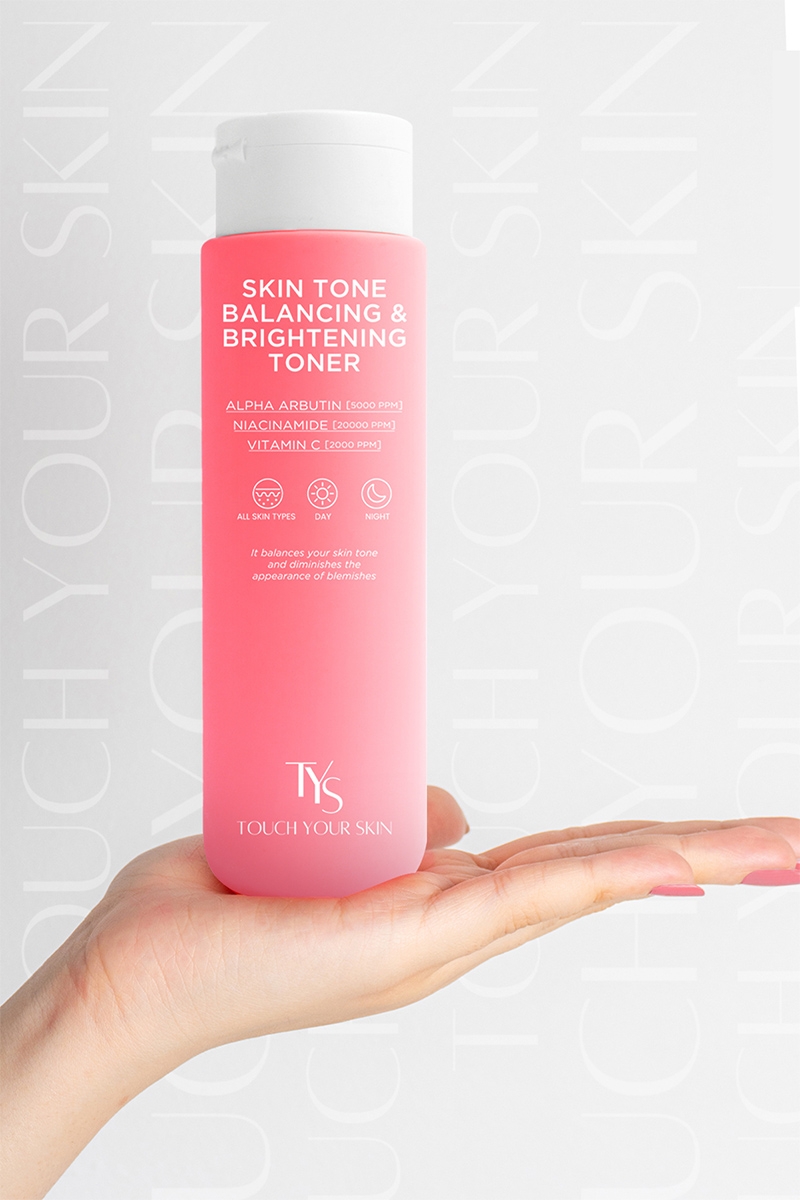 Eşit cilt tonu sağlamaya ve leke görünümünü minimize etmeye yardımcıdır. Alpha Arbutin, Niacinamide, Vitamin C ve Allantoin içeren formülüyle cilt tonunuzu eşitler, aydınlık bir cilt görünümü sağlar ve cildinizi nemlendirerek yatıştırır. Touch Your Skin Cilt Tonu Eşitleyici ve Aydınlatıcı Tonik, cilde hem canlı hem de ipeksi bir görünüm kazandırır.